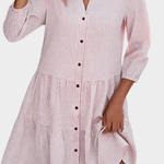 Helmi™ | -raidallinen kesämekko on kevyt ja elegantti tulkinta pohjoismaisesta kesätyylistä. Ilmava puuvillapopliinikangas tuntuu miellyttävältä ihoa vasten ja tekee mekosta täydellisen lämpimiin päiviin. Hillitty raidallinen kuosi ja 3/4-hihat luovat tasapainoisen yhdistelmän mukavuutta ja naisellista eleganssia. Mekko on valmistettu huolellisesti ja pieninä erinä, mikä tekee jokaisesta kappaleesta erityisen ja ajattoman lisän vaatekaappiin.