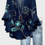 Helmi™ | -turkoosi kukkatoppi on tunnustus ajattomalle luksukselle ja huolelliselle käsityölle. Syvän merensininen tausta luo kontrastia turkooseille kukkakuoseille, ja paita on valmistettu huolella ja korkealaatuisista materiaaleista, mikä takaa mukavuuden koko päivän ajan tinkimättä tyylistä. Volangihihat lisäävät liikettä ja naisellisuutta, ja rento istuvuus yhdistää romanttisen eleganssin ja käytännöllisyyden. Rajoitettu tuotanto korostaa eksklusiivisuutta, ja Helmi™ | toimii keräilykohteena vaatekaapissa, säilyttäen pitkäikäisen arvonsa.