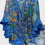 Karoliina™ | Taiteellinen sininen pusero tuo asuusi selkeää taiteellista ilmettä ja skandinaavista käsityötaitoa. Kirkas sininen pohja korostaa abstrakteja kuoseja, jotka muistuttavat maalauksia kankaalla, ja rento istuvuus yhdistää eleganssin ja liikkumavapauden arkeen sekä juhlaan. Röyhelöhihat lisäävät naisellisuutta ja mukavuutta, kun taas huolellinen viimeistely ja laadukkaat materiaalit takaavat pitkäikäisen ja keräilyarvoisen vaatekappaleen. Karoliina™ on suunniteltu kestämään aikaa ja säilyttämään eksklusiivisuuden vaatekaapissasi.