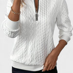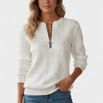 Selja™ | -vetoketjullinen neule tuo arkeen eleganssia ja mukavuutta. Tämä neule yhdistää lämmön, pehmeyden ja modernin ilmeen – täydellinen valinta viileisiin päiviin ja rentoihin viikonloppuihin. Pehmeä ja lämmin kangas tarjoaa mukavuutta koko päivän ajan, ja löysä, imarteleva leikkaus seuraa vartalon linjoja, antaen vapaan liikkumisen tunteen ilman rajoitteita.