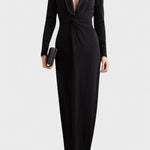 Ainikki-maksimekko ilmentää modernia käsityötaitoa ja klassista eleganssia. Vartaloa myötäilevä leikkaus, syvä V-pääntie ja pitkät hihat luovat tasapainoisen ja hienostuneen siluetin. Minimalistinen design korostaa linjakkuutta ja tekee mekosta ajattoman valinnan.