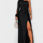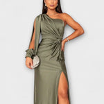 Kerttu-maksimekko huokuu modernia glamouria ja ajatonta eleganssia. Veistoksellinen leikkaus ja kauniisti laskeutuva kangas korostavat vartalon linjoja hienostuneella tavalla. Huolellisesti muotoiltu yläosa ja sulava helma luovat näyttävän mutta tasapainoisen kokonaisuuden.