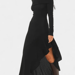 Matilda-mekko korostaa modernia naisellisuutta ja selkeää, hienostunutta siluettia. Epäsymmetrinen leikkaus tuo ilmeeseen rohkeaa eleganssia, kun taas huolellisesti viimeistellyt yksityiskohdat heijastavat laadukasta käsityötä. Mekko on suunniteltu naiselle, joka arvostaa rakennetta, istuvuutta ja ajatonta tyyliä.