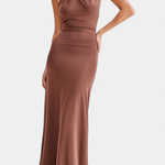 Nanna™-maksimekko ilmentää ajatonta eleganssia ja hienostunutta käsityötä vartaloa imartelevassa siluetissa. Trinity™-malli yhdistää hillityn ylellisyyden ja modernin naisellisuuden: kauniisti laskeutuva kangas, harkittu drapeeraus ja elegantti halterneck-pääntie luovat tasapainoisen ja huolitellun kokonaisuuden. Avoin selkä tuo mekkoon aistillista keveyttä säilyttäen samalla mukavuuden ja tyylikkyyden.