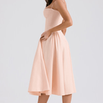 Linnea™ | Midimekko yhdistää klassisen leikkauksen ja modernin keveyden ajattomaksi kokonaisuudeksi. Mekon kauniisti laskeutuva siluetti luo elegantin ilmeen ja tuntuu miellyttävältä päällä koko päivän. Pehmeä ja sileäpintainen polyesterikangas liikkuu luonnollisesti vartalon mukana ja tarjoaa sekä mukavuutta että viimeistellyn ulkonäön. Huolellinen muotoilu ja laadukkaat materiaalit tekevät mekosta monikäyttöisen valinnan arkeen, juhlaan ja iltatilaisuuksiin. Linnea™ | Midimekko on harkittu sijoitus vaatekaappiin, jossa tyyli ja käytännöllisyys kohtaavat.