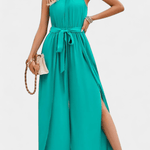 • Epäsymmetrinen leikkaus – Yhden olkapään malli ja sivuhalkio tuovat modernia näyttävyyttä.