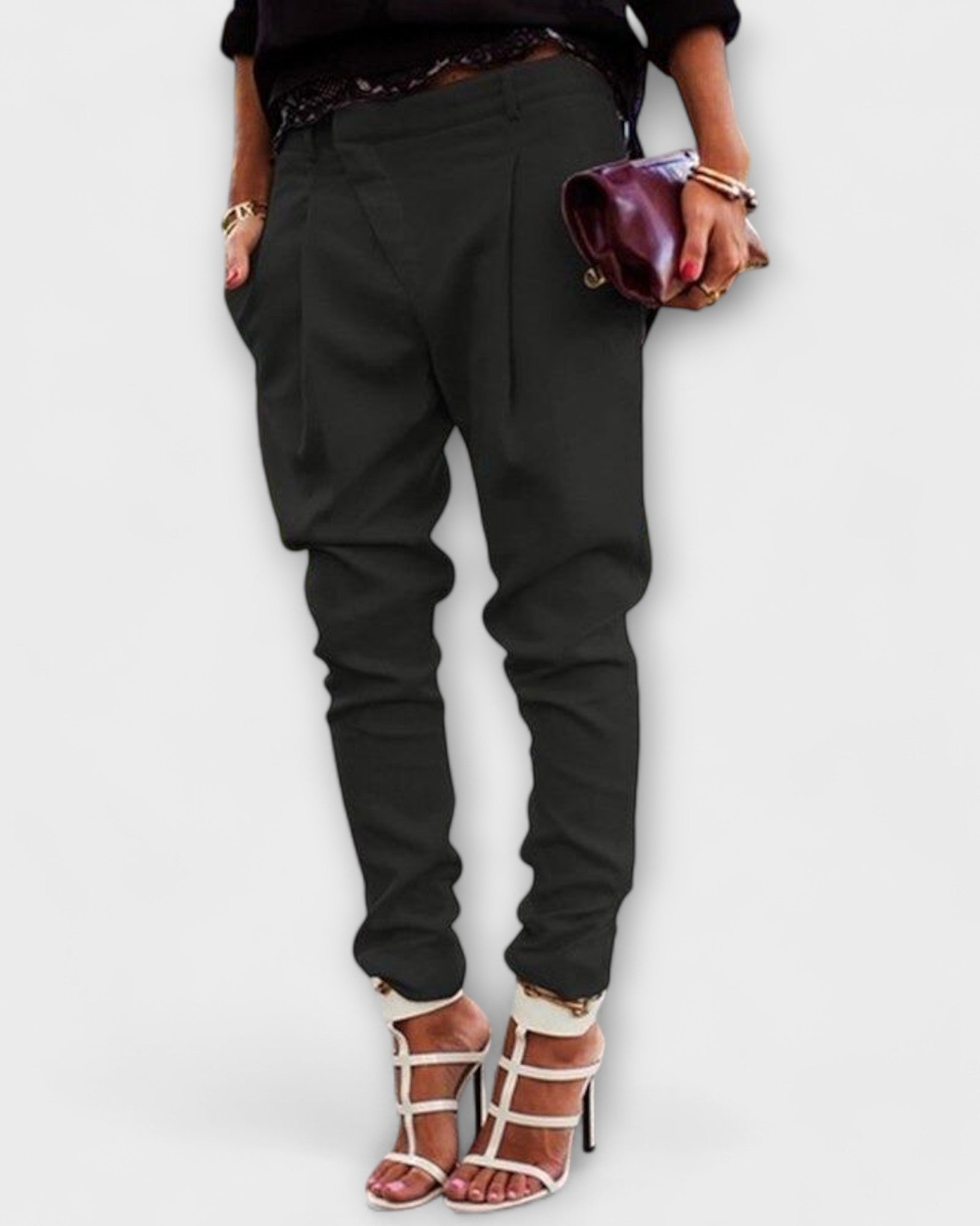 Aada korostaa luonnollista siluettia imartelevalla leikkauksellaan. Pehmeä laskeutuvuus ja tarkkaan harkitut yksityiskohdat tekevät housuista elegantin valinnan niin arkeen kuin juhlavampiin hetkiin. Rajoitettu saatavuus lisää niiden eksklusiivista luonnetta ja tekee niistä arvokkaan lisän harkittuun vaatekaappiin.