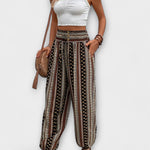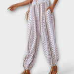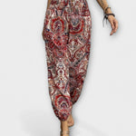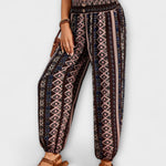 • Uniikki kuosi: Etninen graafinen kuvio antaa housuille tunnistettavan ja ajattoman ilmeen.