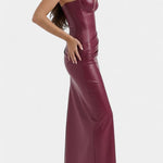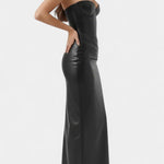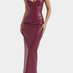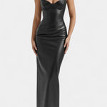 Valpuri-mekko huokuu hienostunutta eleganssia ja ajatonta luksusta. Muotoon ommeltu korsettiosa korostaa vyötäröä ja luo ryhdikkään, naisellisen siluetin. Silkkimäinen, kevyesti kiiltävä kangas laskeutuu sulavasti ja tuo kokonaisuuteen näyttävää glamouria.