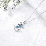 Päivi™ | Hopeinen kaulakoru, jossa kaksoisdelfiinit ja sininen kristalli