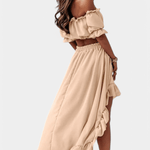 • Off-shoulder-muotoilu, tuo esiin kauniin ja elegantin siluetin