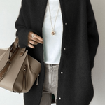 Tämä neuletakki on hienostunut yhdistelmä perinteistä käsityötaitoa ja ajattoman selkeää muotoilua. Pehmeä ja hengittävä neulos tuntuu miellyttävältä ihoa vasten, samalla kun huolellinen rakenne tuo ryhtiä ja kestävyyttä. Tasapainoinen siluetti ja harkitut yksityiskohdat tekevät kokonaisuudesta monikäyttöisen ja elegantin.