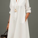 Kaisa™ | Ajaton midimekko on suunniteltu modernille naiselle, joka arvostaa selkeää muotoilua, huolellista käsityötä ja hienovaraista luksusta. Puhdas siluetti ja terävä kaulus luovat lämpimän, sofistikoituneen ilmeen, kun taas kevyesti laskeutuva A-linjainen midi-helma tuo kokonaisuuteen tasapainoa ja liikkuvuutta. Mekko on valmistettu ensiluokkaisesta puuvillasekoitteesta, joka tuntuu miellyttävältä ihoa vasten ja hengittää luonnollisesti. Sivutaskut ja huomaamaton napitus lisäävät käytännöllisyyttä rikkomatta minimalistista estetiikkaa. Rajoitettu valmistus tekee Kaisa™ | Ajaton midimekko -mallista pitkäikäisen ja ajattoman valinnan vaatekaappiin.
