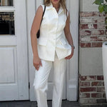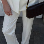 Helena on ajattoman räätälöinnin ja hillityn eleganssin täydellinen yhdistelmä. Rakenteellinen liivi korostaa ylävartaloa kauniisti, kun taas levenevät housut pidentävät siluettia ja tuovat kokonaisuuteen tasapainoa. Kevyt, hengittävä ja rypistymätön materiaali tuntuu miellyttävältä päällä koko päivän. Huolellisesti viimeistellyt yksityiskohdat ja klassinen muotokieli tekevät tästä jakkupuvusta varman valinnan niin työpäiviin kuin hienostuneisiin viikonloppuihin.