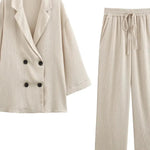 Kerttu on hienostunut setti, jossa klassinen muotokieli yhdistyy moderniin rakenteellisuuteen. Selkeä ja ryhdikäs leikkaus luo ajattoman siluetin, joka toimii saumattomasti sekä rennommissa että muodollisemmissa kokonaisuuksissa. Huolellisesti viimeistellyt yksityiskohdat ja laadukkaat materiaalit tuovat asuun rauhallista arvokkuutta, kun taas kevyt rakenne takaa miellyttävän käyttötuntuman koko päivän ajan. Kerttu on harkittu valinta naiselle, joka arvostaa kestävää tyyliä ja vaivattomasti yhdisteltävää vaatekaappia.