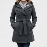 Koe Eliisa™ | kaksirivisen takin eleganssi – yhdistelmä naisellisuutta, mukavuutta ja tyyliä. Kaksirivinen leikkaus, kiiltävät napit ja säädettävä vyö luovat kauniin siluetin. Pehmeä vuori tarjoaa lämpöä ja mukavuutta koko päivän ajan. Takki on täydellinen naisille, jotka haluavat huolehtia itsestään ja tuntea olonsa mukavaksi myös kylmässä säässä.